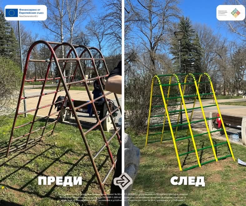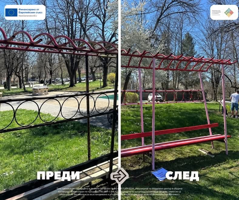 Съоръженията в част от Градски парк в Ботевград придобиха свеж и обновен вид, благодарение на усилията на Младежкия център и ентусиазираните доброволци. Кътчето за игри и забавления на децата се превърна в по-пъстро и приветливо място, което радва малчуганите и техните родители.