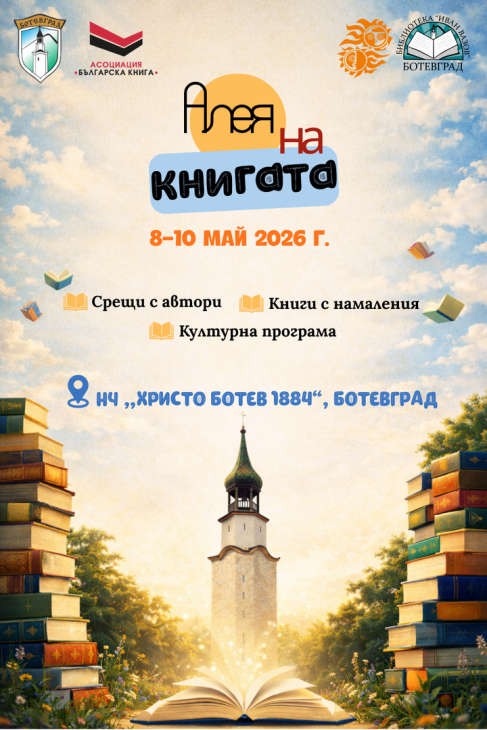 Ботевград слага началото на книжните събития на Асоциация Българска книга у нас. Градът ни се нареди до София, Варна и Пловдив, които домакинстват на Алея или Панаир на книгата. Събитията в трите най-големи български града са през месеците юни, юли, август, септември и декември.